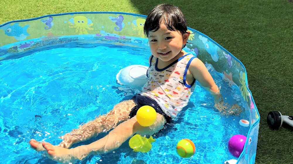 夏場の人工芝は日差しの影響で60度程度まで熱くなりますが、適切な対策を押さえておけば、庭遊びやプールをあきらめる必要はありません。